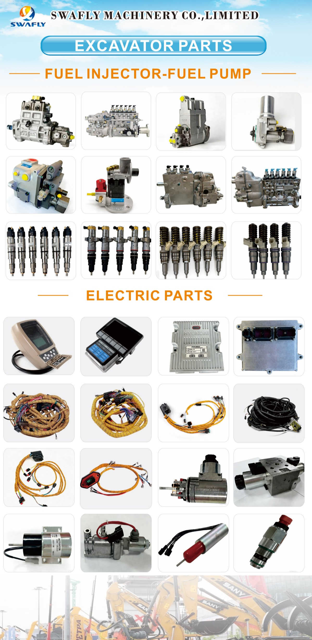 Swafly Machinery har utökat sitt sortiment av grävmaskiner avsevärt, med stort fokus på bränslesystem och elektriska komponenter. Den här uppdateringen syftar till att bättre stödja reparationsverkstäder och utrustningsägare runt om i världen som snabbt behöver pålitliga delar.